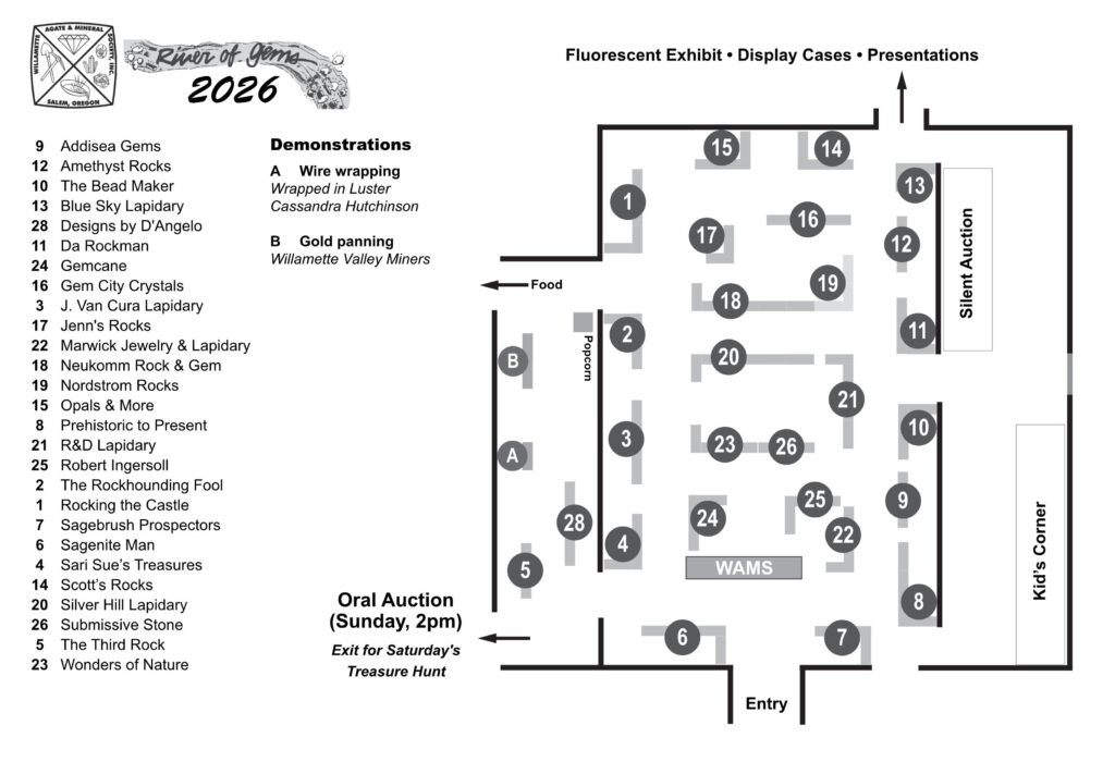 Join us for our 69th annual River of Gems rock and gem show at the Polk County Fairgrounds in Rickreall, Oregon! The theme for 2026 is Rocks of Oregon.